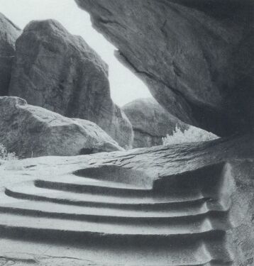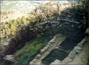 - Terrace garden outside cave of Tensin Palmo, where she spent twelve years; Himalayan Mountains