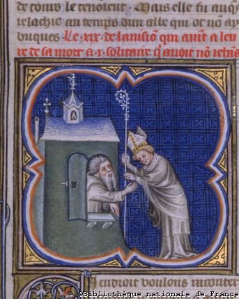 - Ansoald, bishop of Poitiers, visits a hermit, from Bibliotheque