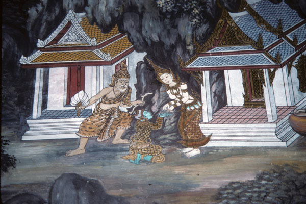 Wall paintings from Wat Phra Kaew or Emerald Buddha Temple, Bangkok, Thailand;