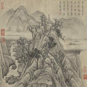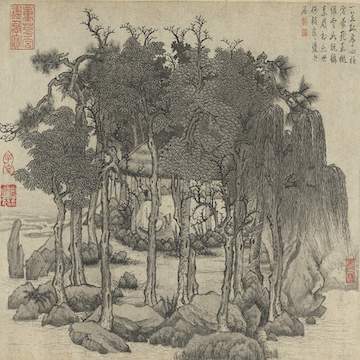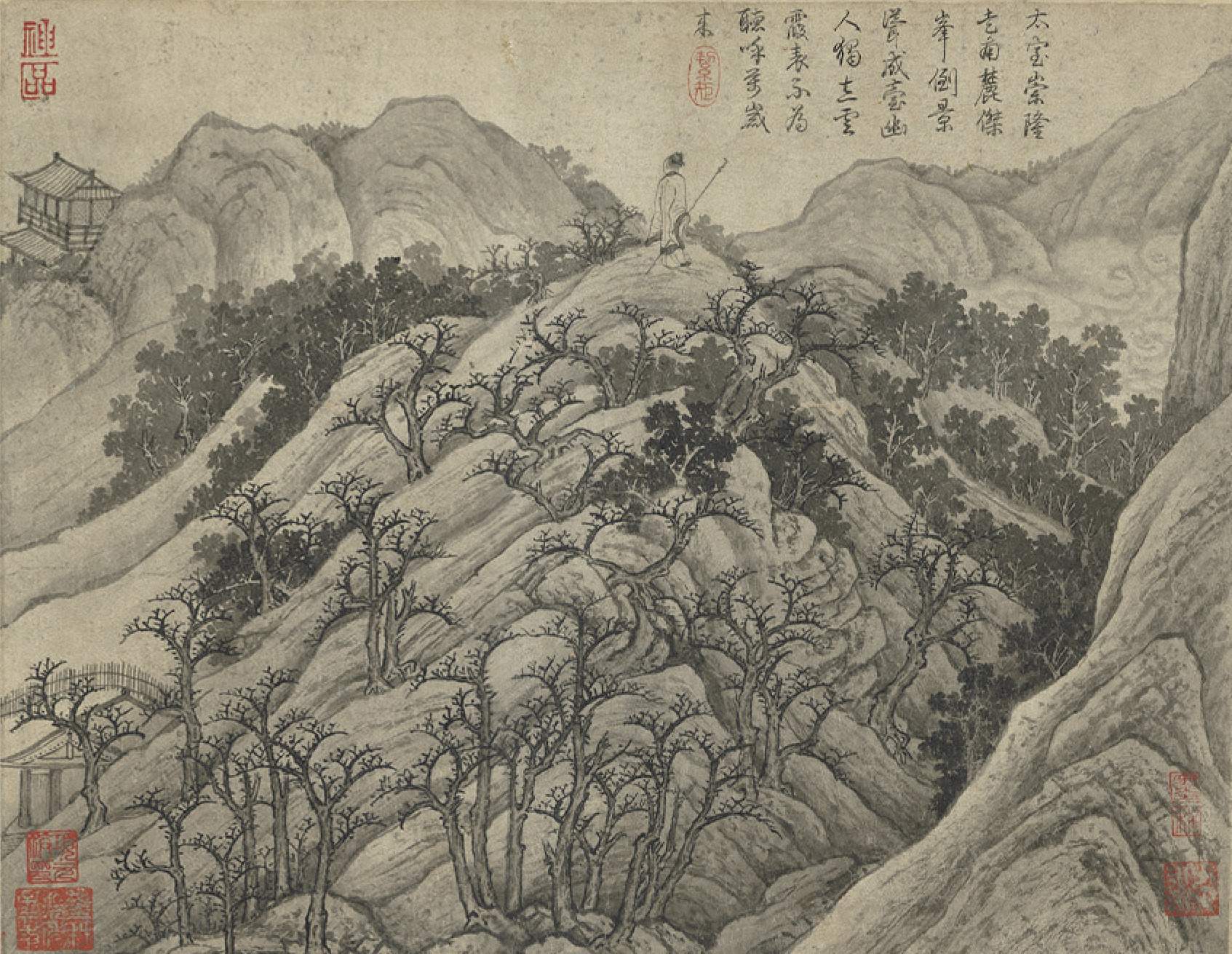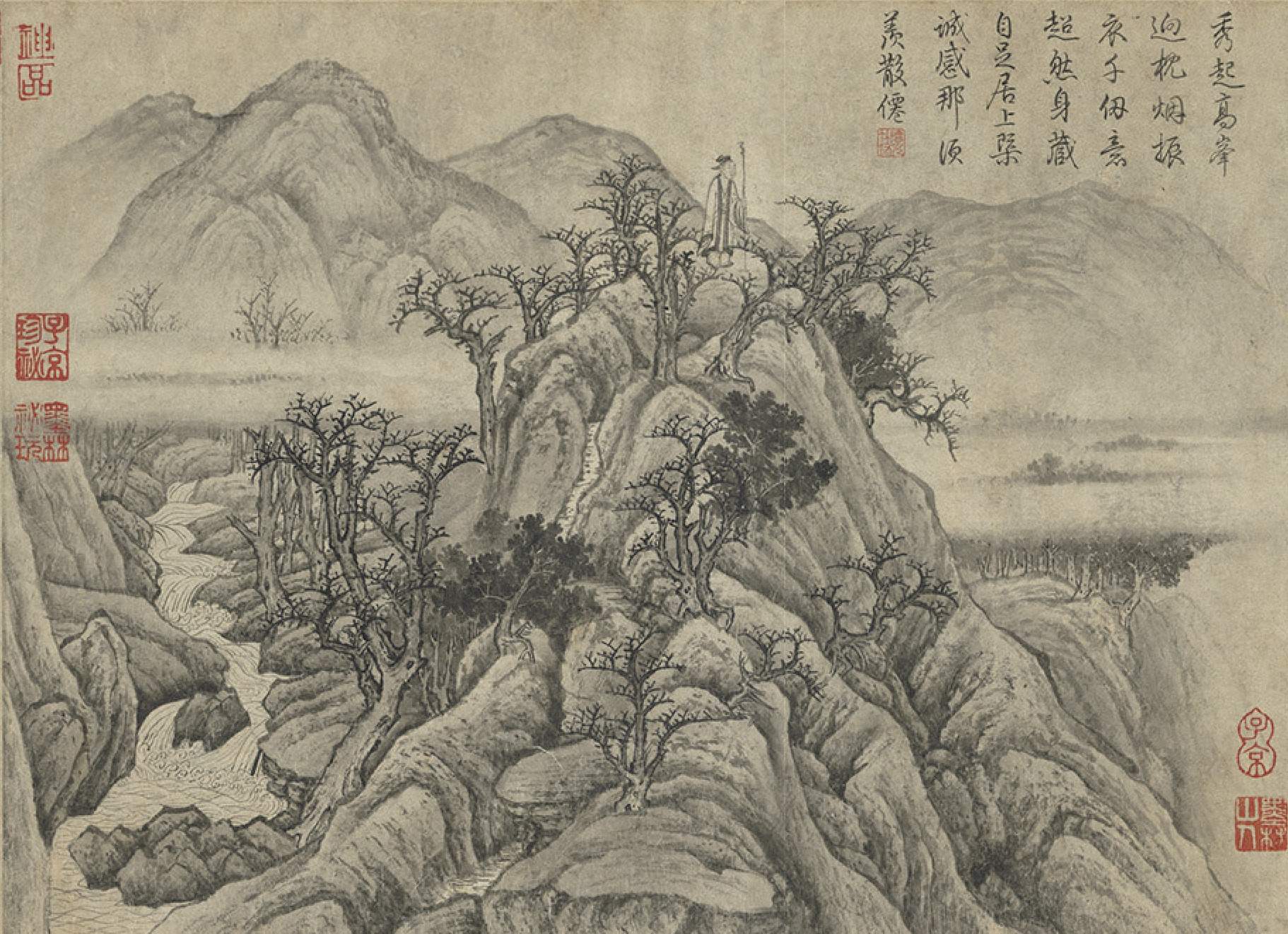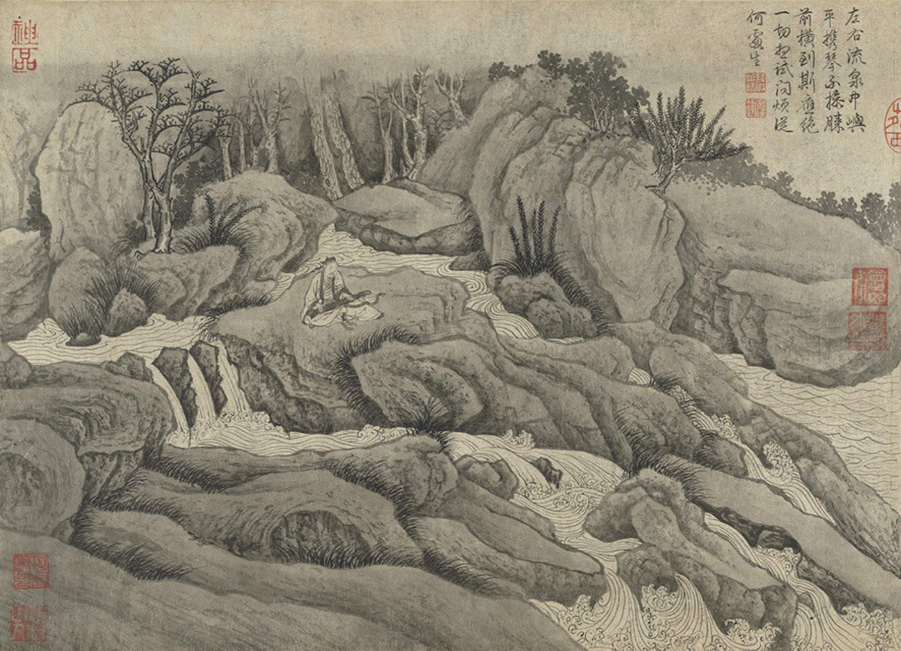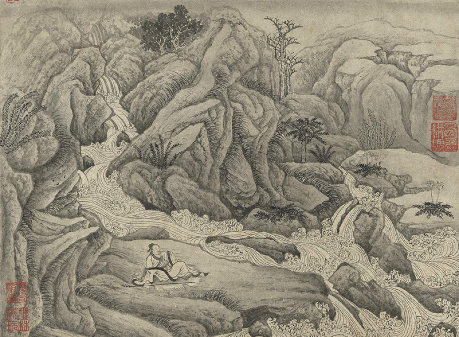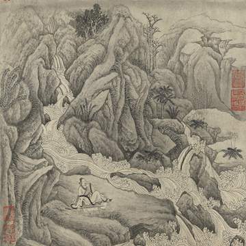 The earliest painting of a hermit theme in China is attributed to Lu Hong of the Tang dynasty era. The works left to us are a masterful copy by a later painter, however, for the original works are lost.