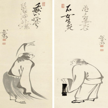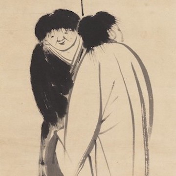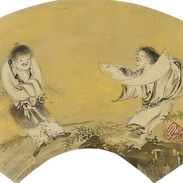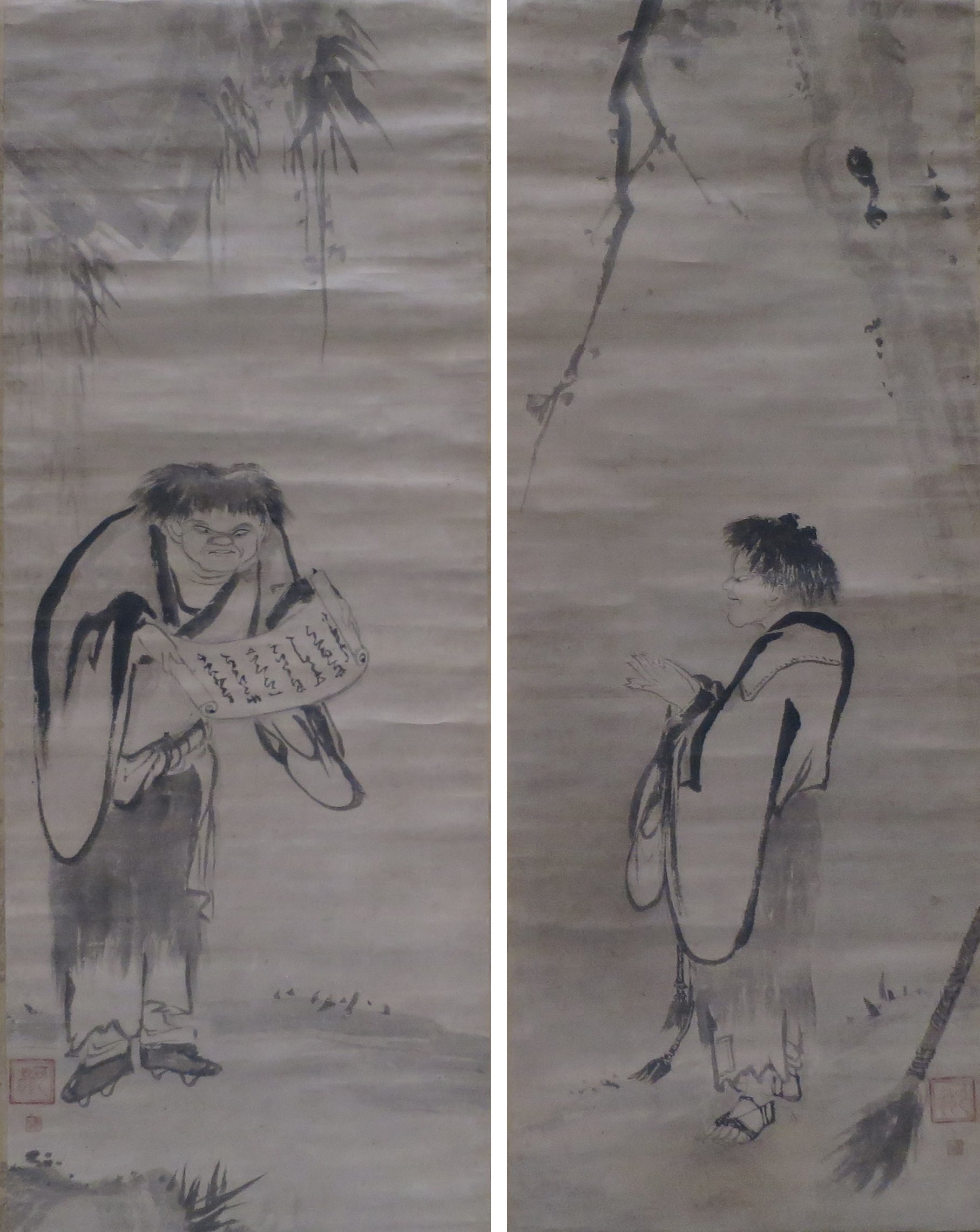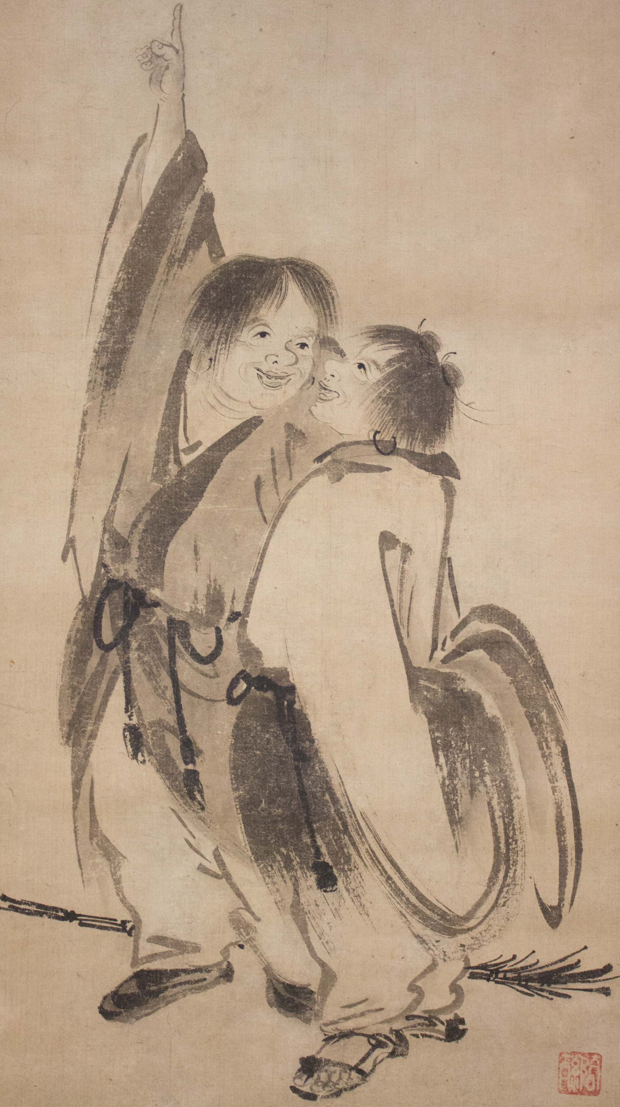 Two methods were employed by the authorities. In the case of Zen, the popular Chinese Zen monks Hanshan, Shide, and Fenggan, were shredded of depth or insight and reduced to caricatures of dismissable eccentricity. For the second method, see the accompanying gallery of Japanese paintings addressing the Chinese sages associated with old Taoist circles and also reduced to decadents.