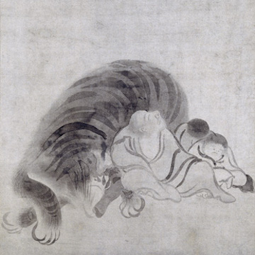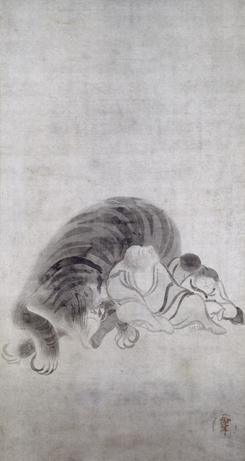 2. Mokuan Reien (fl. 333-1345): "Four Sleepers," representing Hanshan, Shide, Fenggan, and Fenggan's tiger