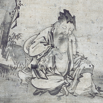 This gallery opens with the mythical founder-hermit Enno Gyoja, forbidden by the gods to pursue his avocation but defying them nevertheless. The legendary Chinese hermit Chen Tuan or Chen Xiyi was the Taoist founder of martial arts avidly adopted by Japanese interests and depicted here in meditation.