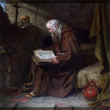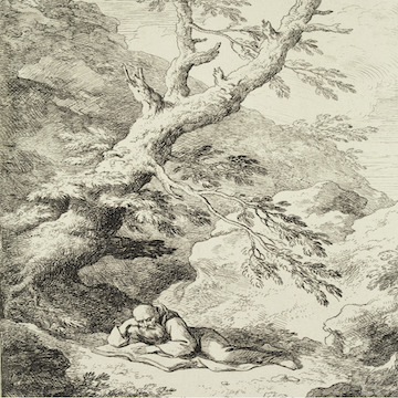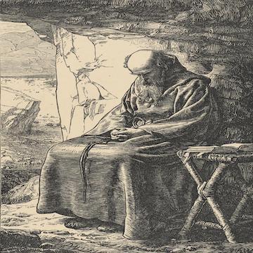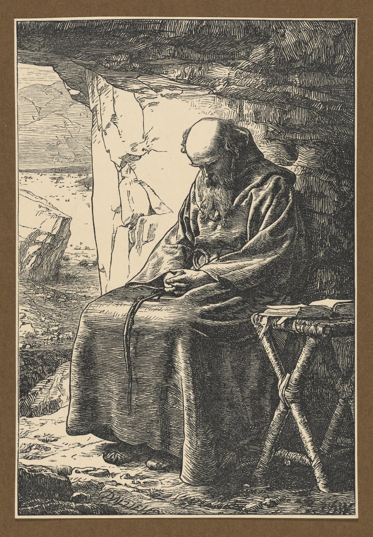 With Bloemaert, Dietrich, Schwind, Spitzweg, Dalziel, and Izraelian, early modern to modern, the hermit is traditional but do we not discern the artist's greater confidence as a modern observer still presenting a pressingly relevant ideal?