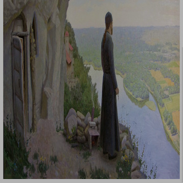 Doré is everyone's favorite modern etcher of dramatic literary events, and hermits are among them. Finally, we see United States vistas as an opening of benign solitude in Gifford. But modernity and solitude again clash in Schiele and Ruesink, where the hermit is the self's shadow, pulling toward concealment and reclusion, unhappily, in the shadow of madness.