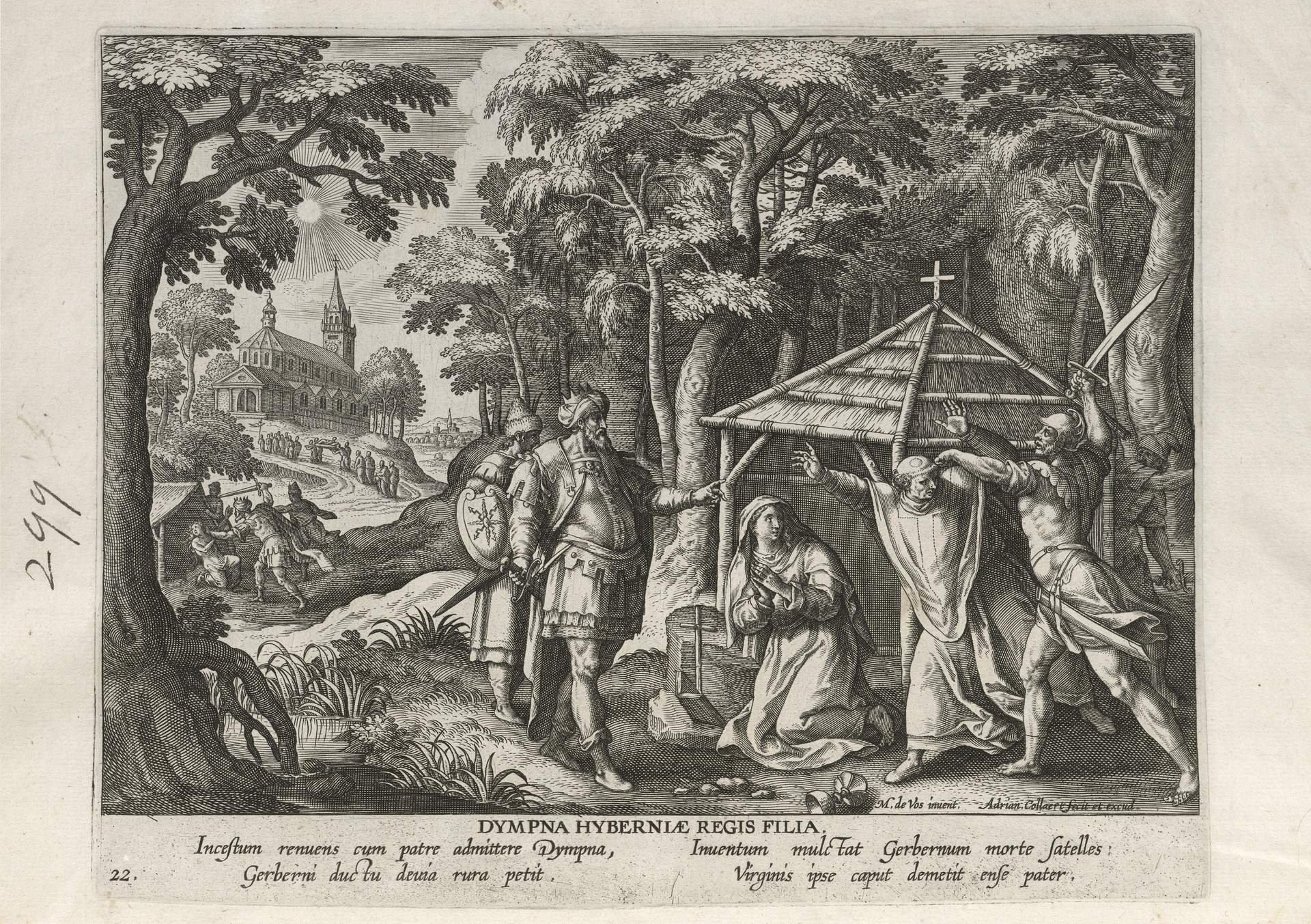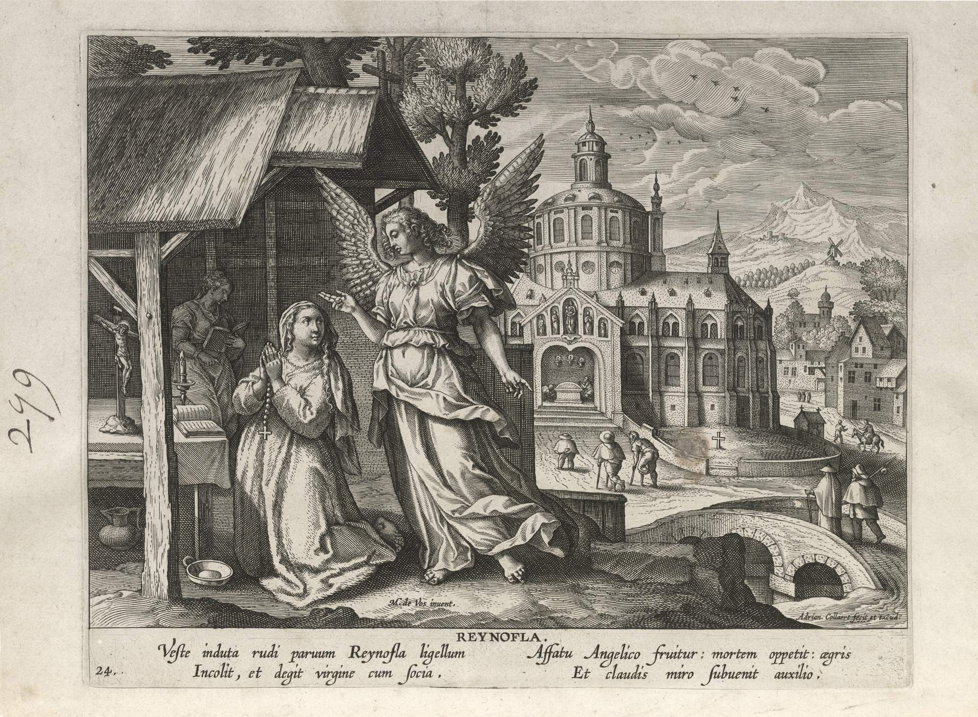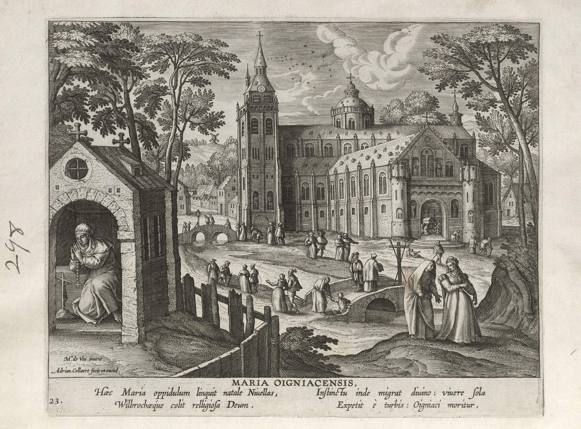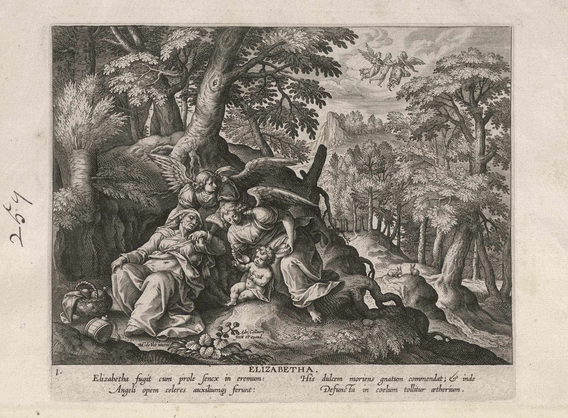 This set of hermit engravings is conspicuously not produced by the Sadeler brothers, but the identification with this school of artisans is clear. The continuity of images and settings is the same: ancient desert Christian hermits, presented in an idyllic semi-rural setting, each hermit busy in her task, always an exemplary prototype.