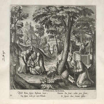 All of the women hermits are presented in a distinctive Northern Renaissance and Flemish style that edifies, idealizes, and occasionally provokes a sense of nostalgia for an imagined medieval order lost to contemporaries, though updated for the sensibilities of the sixteenth and seventeenth centuries. This book of collected engravings must have provided hours of idle reflection for its urban, professional owner, scenes of perfection exempted from the turmoil of the times.