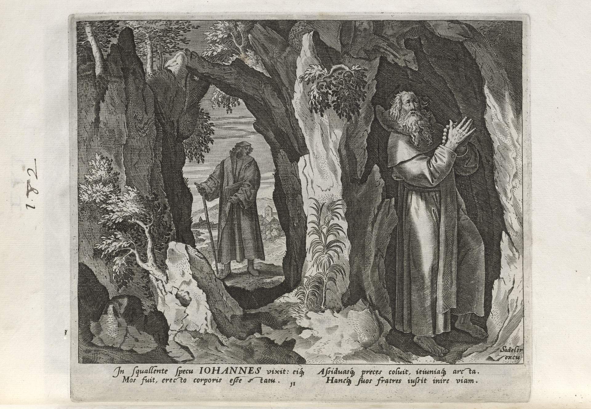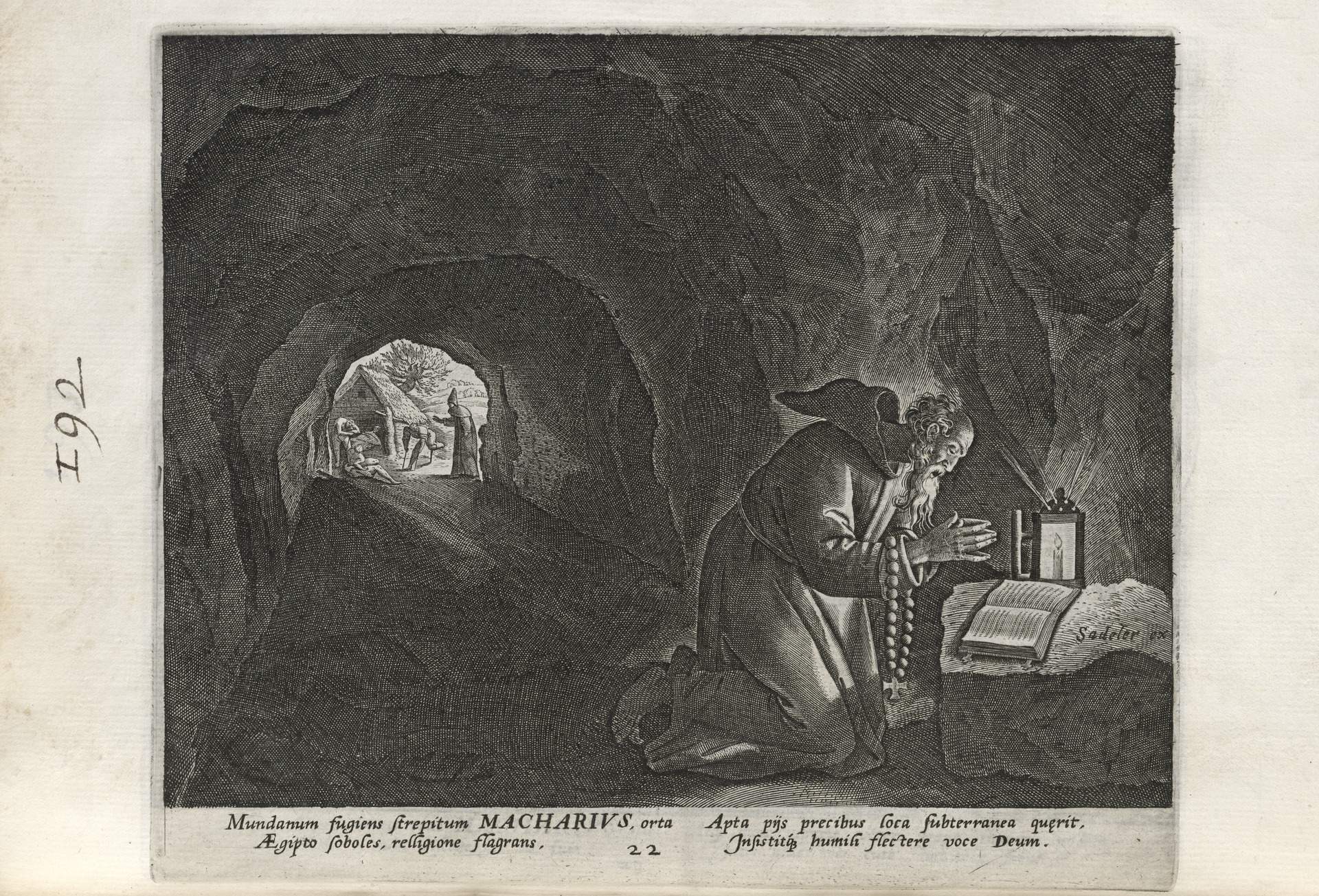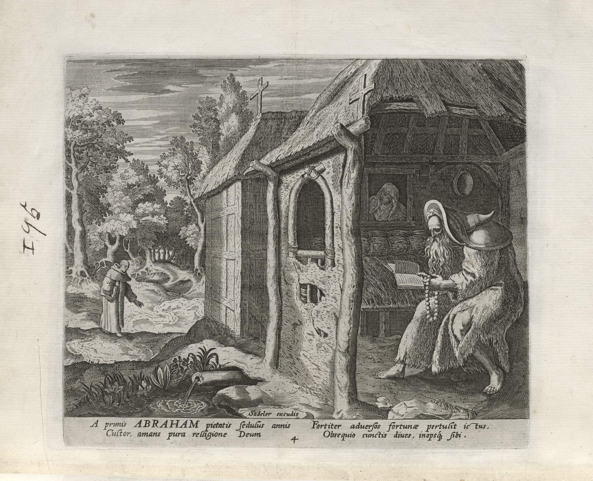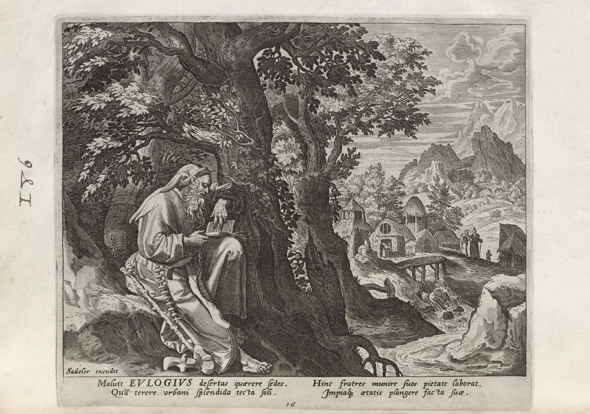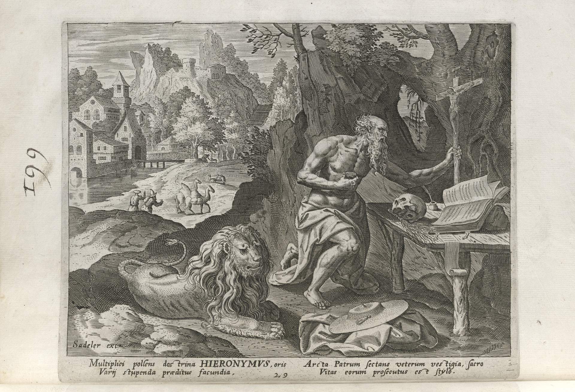 The Sadeler brothers were engravers and publishers, sometimes publishing another engraver. Their portfolio respresented ancient desert Christian hermits, in an idyllic semi-rural setting, anacronistically not antiquity or desert, each hermit busy in his task, always an exemplary figure. Who were all of these hermits? We know Paul of Thebes, Anthony, and Jerome, but the others are obscure. Two stand out, besides Jerome with his companinable lion.