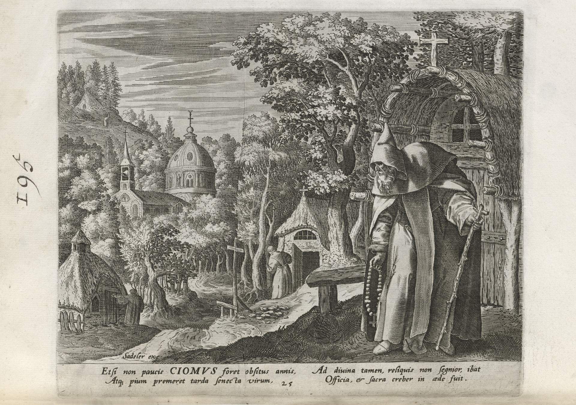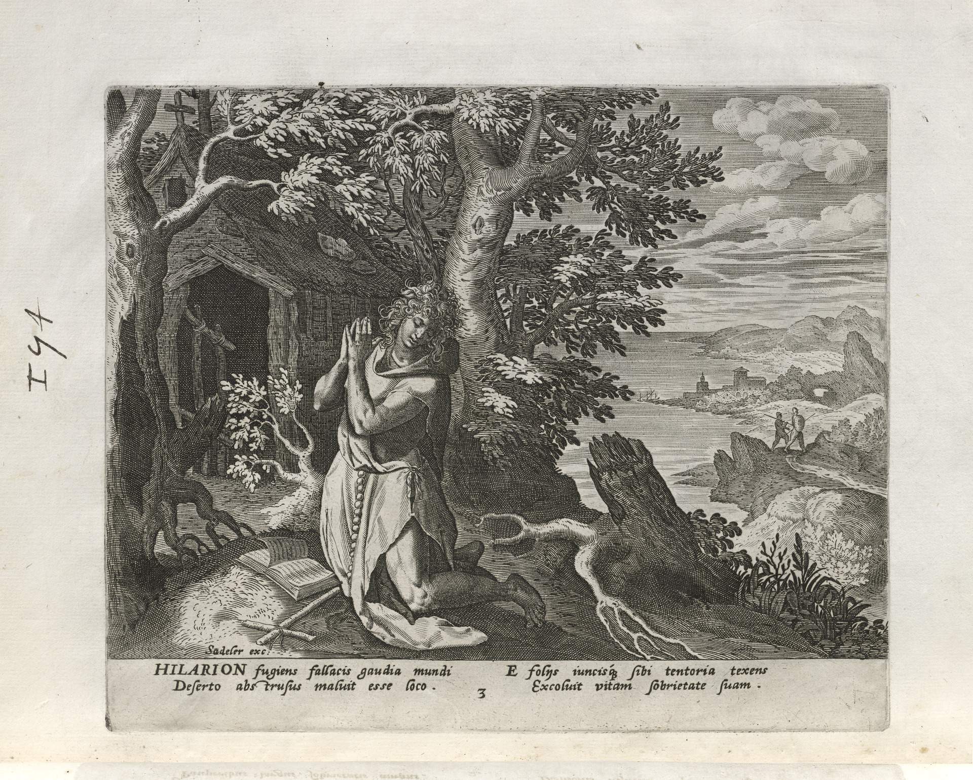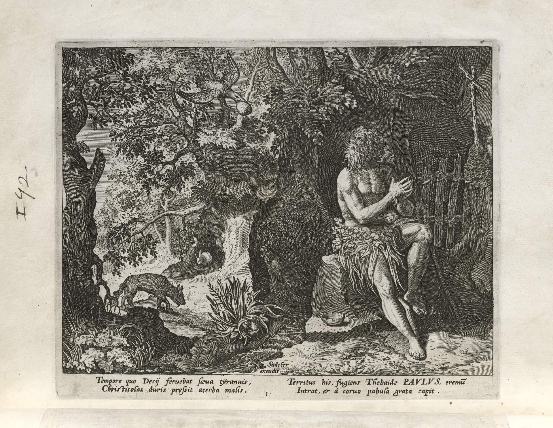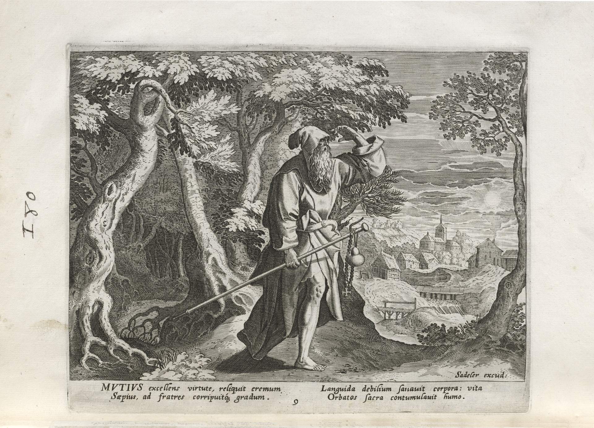The Sadeler brothers were engravers and publishers, sometimes publishing another engraver. Their portfolio respresented ancient desert Christian hermits, in an idyllic semi-rural setting, anacronistically not antiquity or desert, each hermit busy in his task, always an exemplary figure. Who were all of these hermits? We know Paul of Thebes, Anthony, and Jerome, but the others are obscure. Two stand out, besides Jerome with his companinable lion.