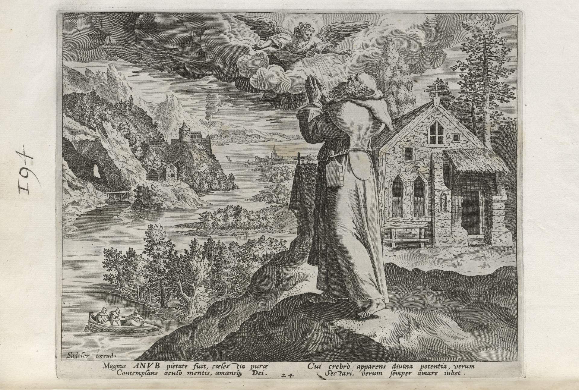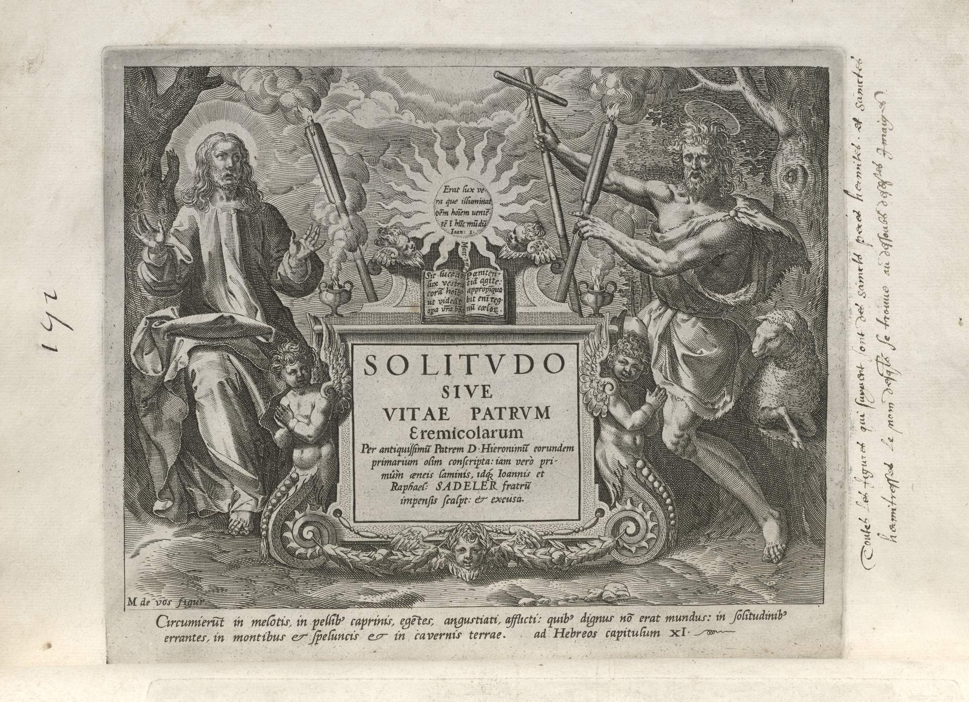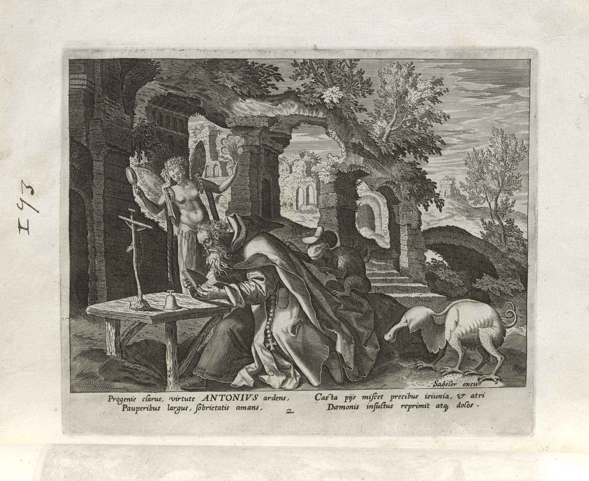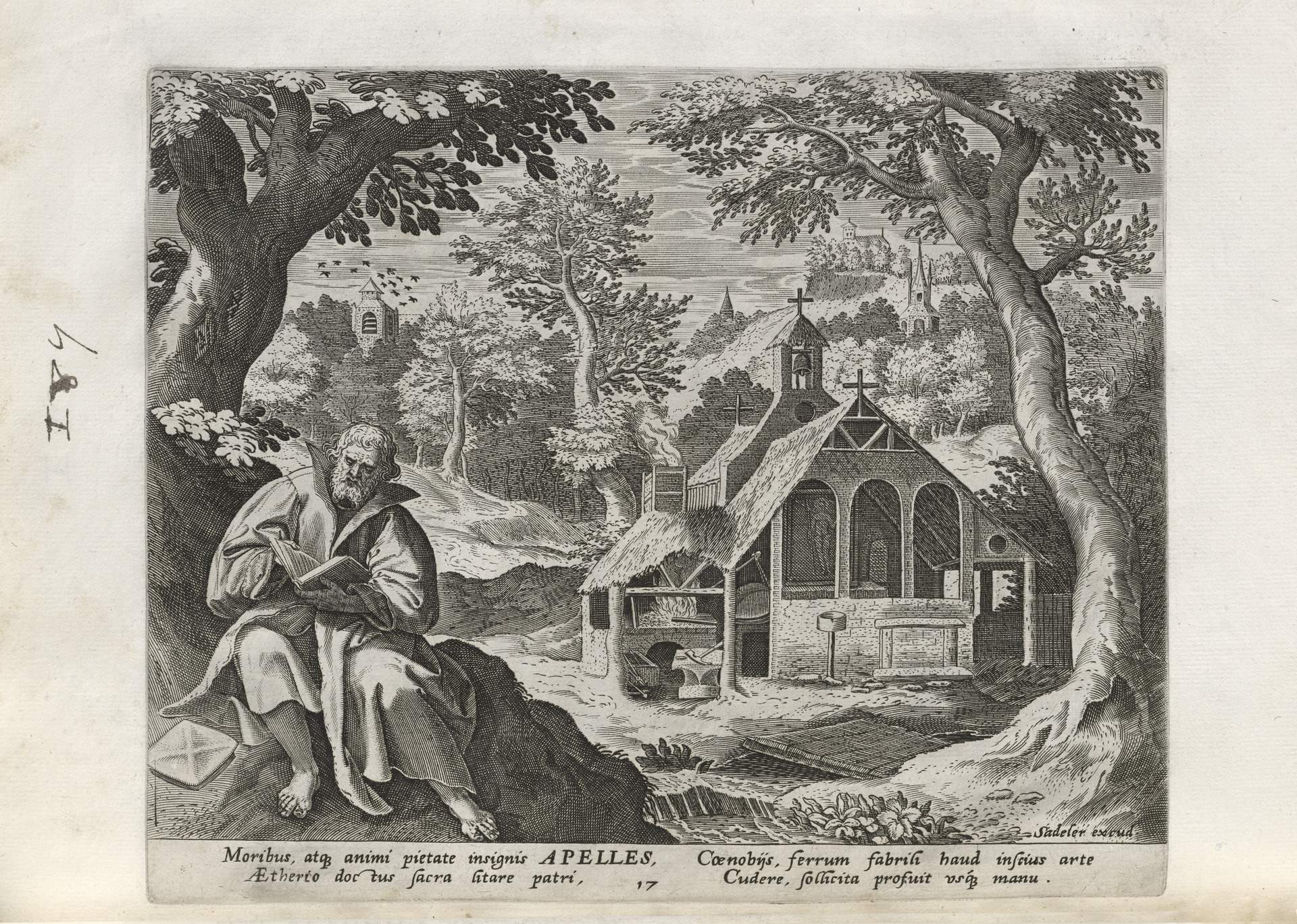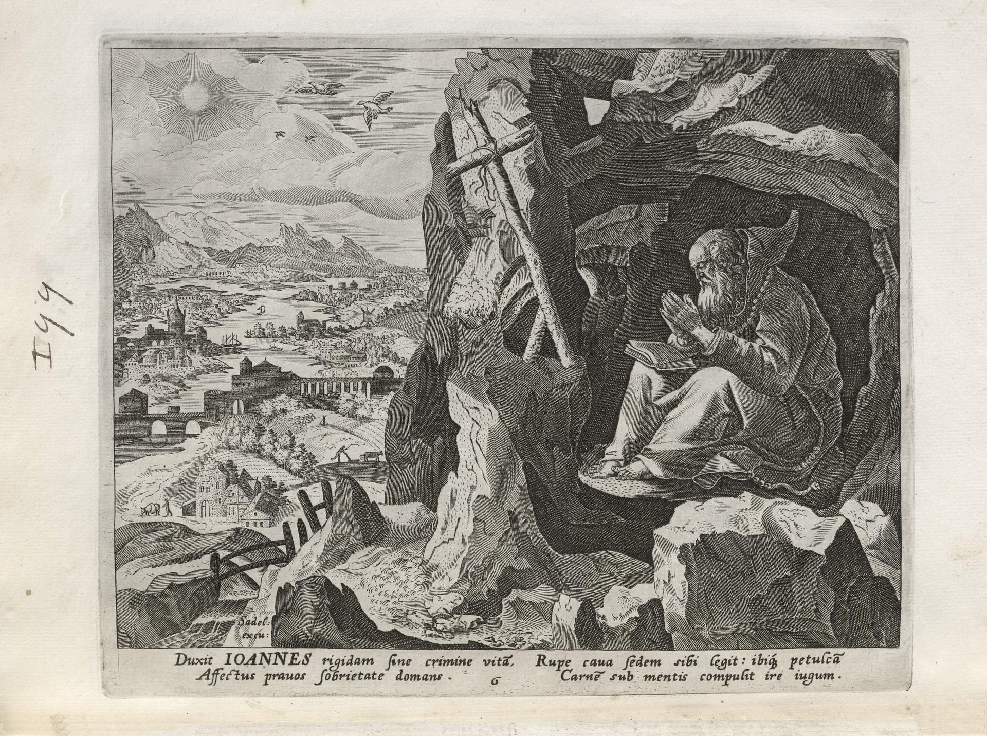 The Sadeler brothers were engravers and publishers, sometimes publishing another engraver. Their portfolio respresented ancient desert Christian hermits, in an idyllic semi-rural setting, anacronistically not antiquity or desert, each hermit busy in his task, always an exemplary figure. Who were all of these hermits? We know Paul of Thebes, Anthony, and Jerome, but the others are obscure. Two stand out, besides Jerome with his companinable lion.
