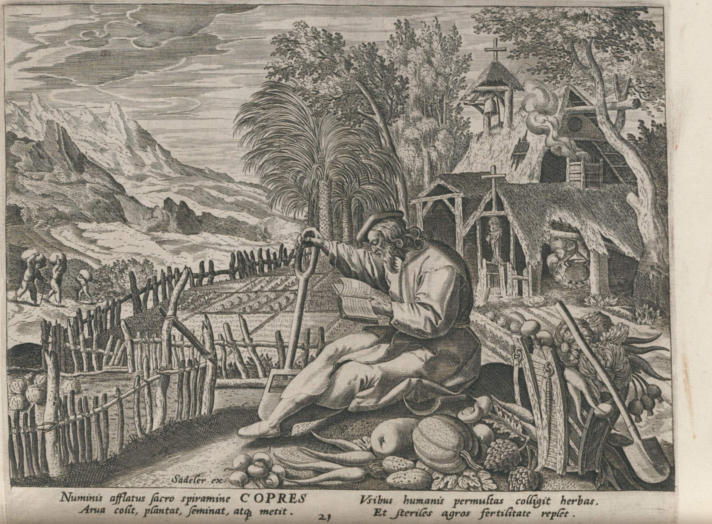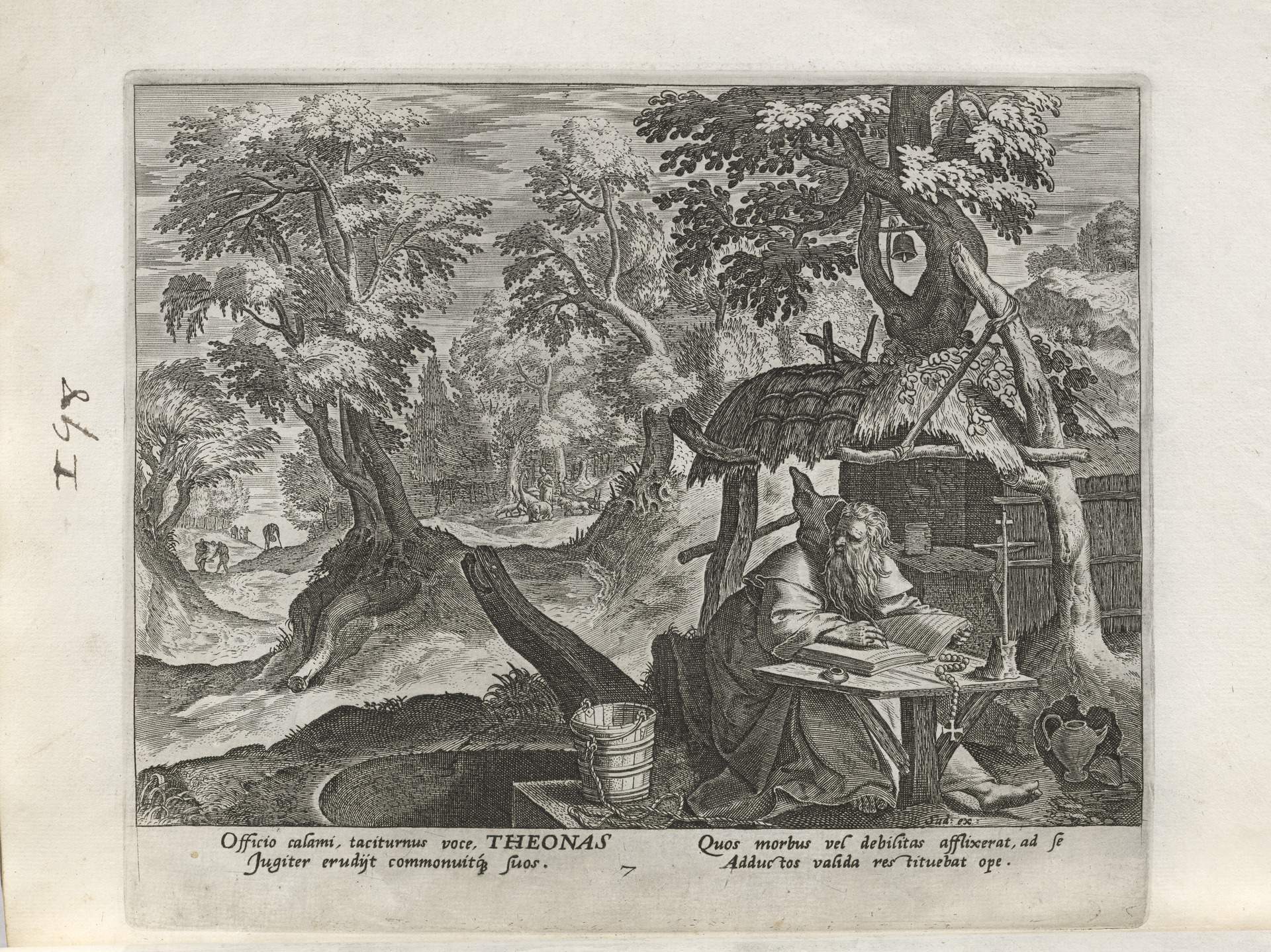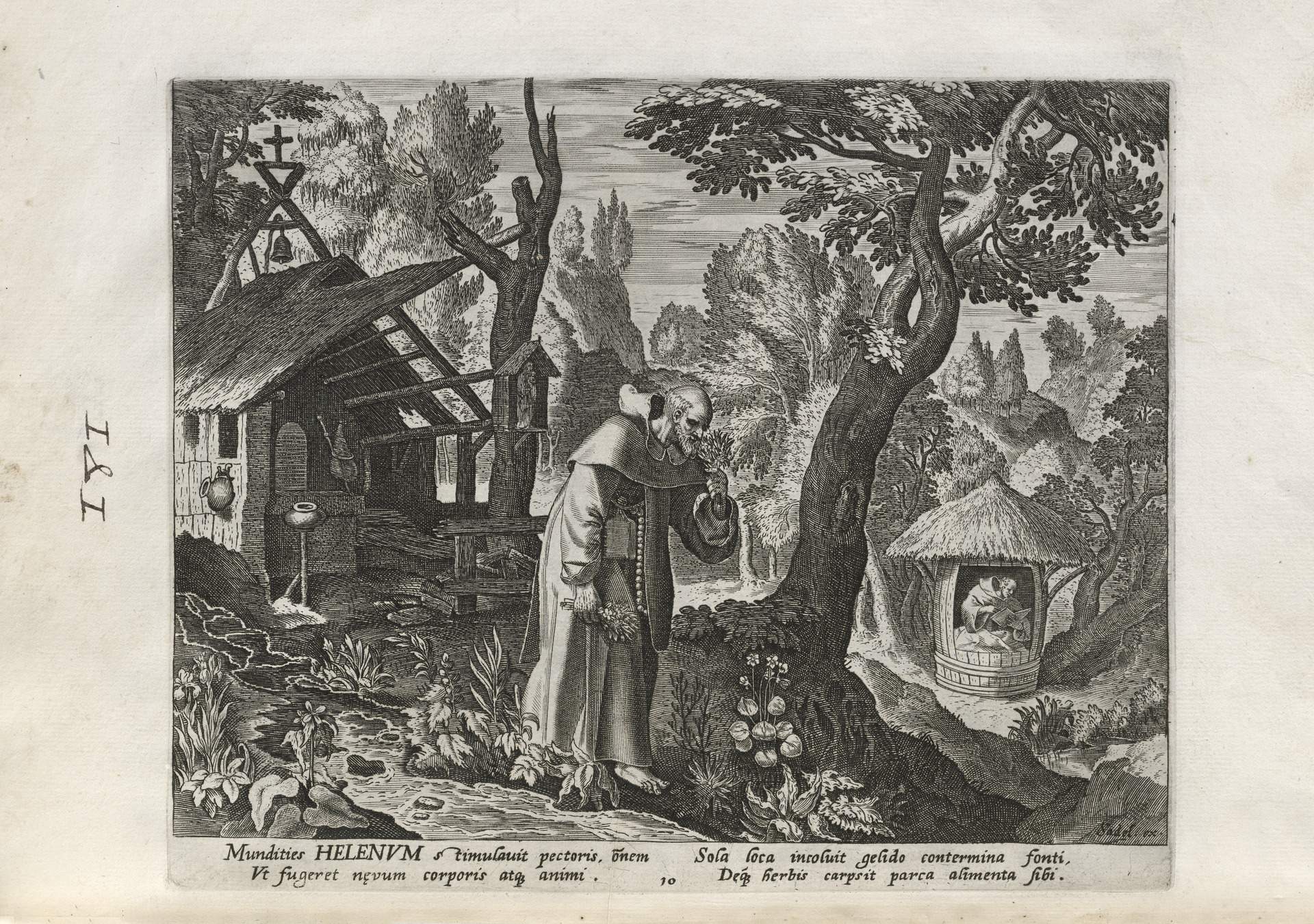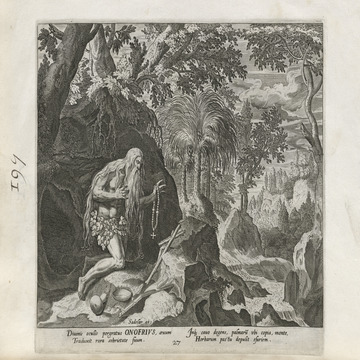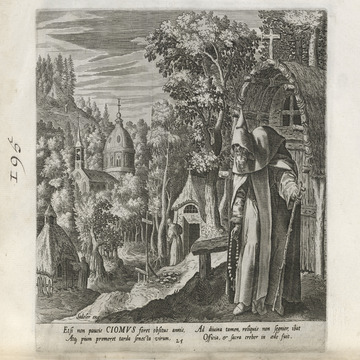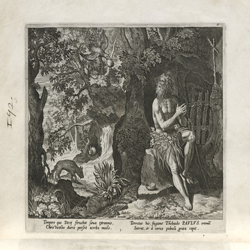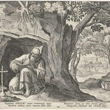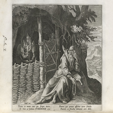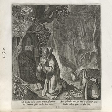 All of the hermits are presented in a distinctive Northern Renaissance and Flemish style that edifies, idealizes, and occasionally provokes a sense of nostalgia over an imagined medieval order lost to contemporaries, though updated for the sensibilities of the sixteenth and seventeenth centuries. This book of collected engravings must have provided hours of idle reflection for its urban, professional owner, scenes of perfection exempted from the turmoil of the times.