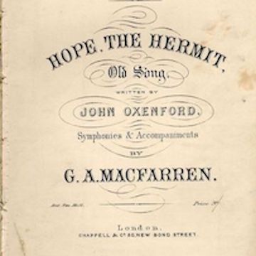 For the sake of quick classification, a folk song on hermits appearing in the National Songbook, 1906, p. 32 (UK) carries an informal respectability as a classic. "Hope the Hermit" was composed by John Oxenford (1812-1877), derived from a seventeenth-century version. Thd treatment is light, the virtue of hope identified with the carefree hermit of lore.