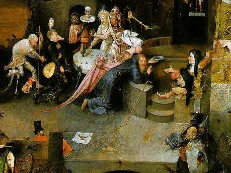 The Temptations are artistic representations of a theme, namely the temptations of the desert hermits. Historically they had depicted (especially in literature) a devil or demon that, however terrifying, was nevertheless a limited if fantastic and separate beast (the customary horns, tail, and smoke). But the gryllos is a hybrid of human and animal, as if the human being was now possessed by a demon solely because of being tempted.